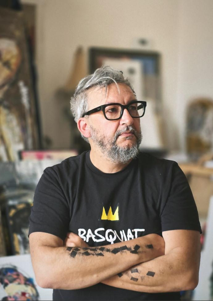 Sylvano est un artiste peintre autodidacte né en 1969, fondu dans une exploration picturale dérivée de la couleur, du collage, de l’encre et du pastel. Inspiré par des voyages, il élabore un univers métaphysique et critique, oscillant entre abstraction et figuration.