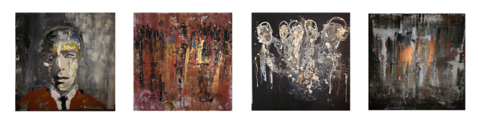 Ce choc visuel le pousse à se consacrer entièrement à la peinture. Il travaille sur des supports atypiques : cartons, châssis bruts, collages.